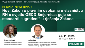 - Webinar: Novi Zakon o pravnim osobama u vlasništvu RH u svjetlu OECD Smjernica – gdje su standardi “ugrađeni” u rješenja Zakona